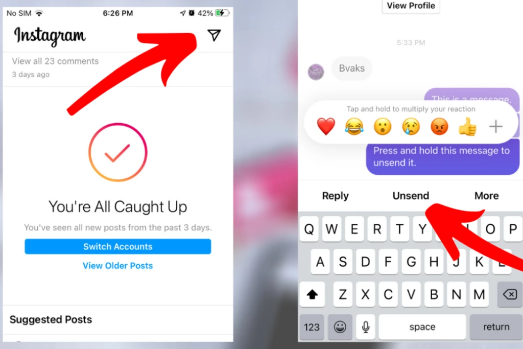 خوش قسمتی سے انسٹاگرام اب صارفین کو یہ سہولت دیتا ہے کہ وہ بھیجے گئے پیغام کو “Unsend” کر سکیں یعنی میسج کو دونوں جانب سے مکمل طور پر حذف کر سکیں۔