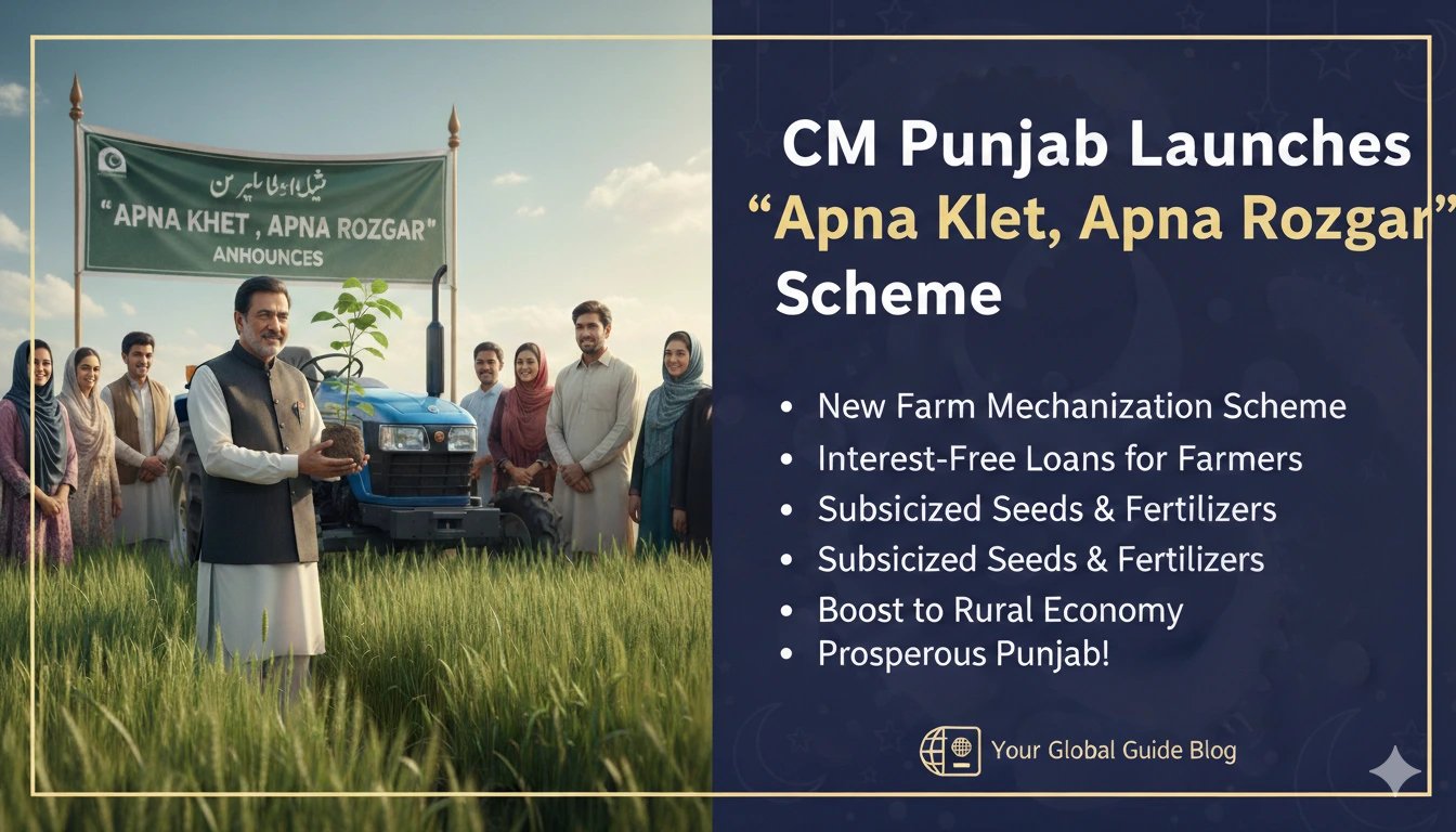 وزیراعلیٰ پنجاب مریم نواز شریف نے صوبے بھر کے بے زمین کسانوں کو بااختیار بنانے کے لیے ایک تاریخی زرعی منصوبے "اپنا کھیت، اپنا روزگار سکیم” (Apna Khet Apna Rozgar Scheme) کا اعلان کیا ہے۔ میانوالی میں ایک بڑے عوامی اجتماع سے خطاب کرتے ہوئے انہوں نے ضلع کے لیے ایک جامع ترقیاتی پیکج کا بھی اعلان کیا جس میں نئے میڈیکل، لاء اور ایگریکلچر کالجز کا قیام شامل ہے۔