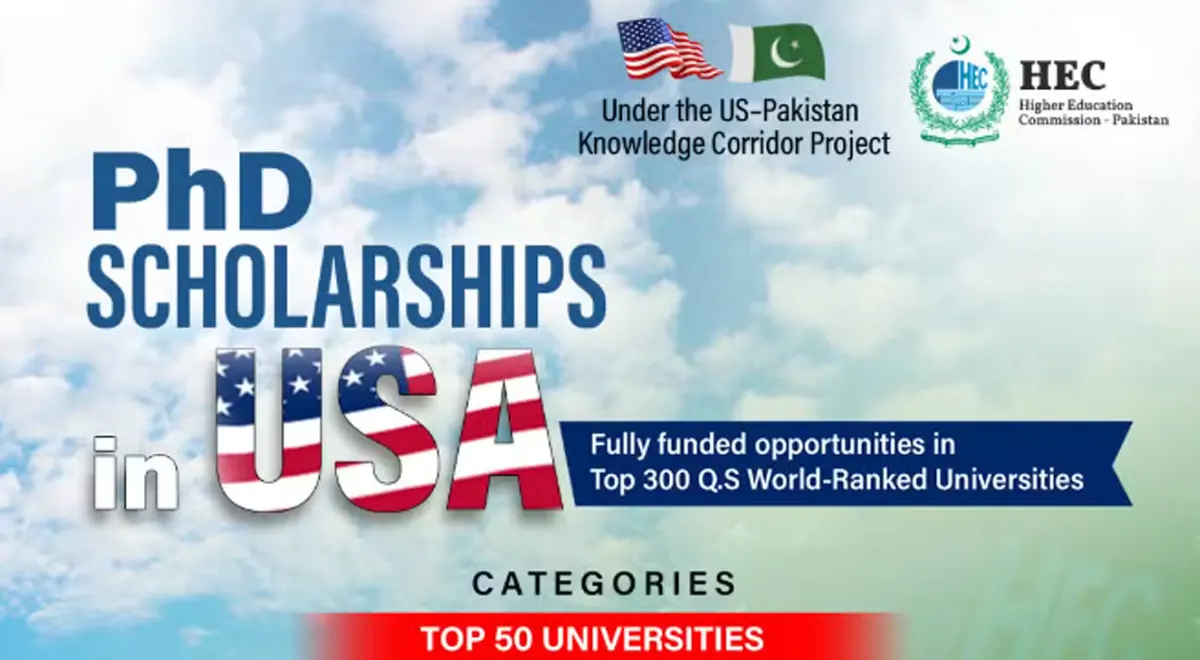 ہائر ایجوکیشن کمیشن (HEC) پاکستان نے امریکہ کی معروف یونیورسٹیوں میں مکمل فنڈڈ پی ایچ ڈی اسکالرشپس کے لیے درخواستوں کا اعلان کردیا ہے۔ یہ اسکالرشپس یو ایس-پاکستان نالج کوریڈور پروجیکٹ کے تحت دی جا رہی ہیں جس کا مقصد پاکستانی طلبہ کو دنیا کی 300 بہترین (QS رینکڈ) امریکی یونیورسٹیوں میں اعلیٰ تعلیم کے مواقع فراہم کرنا ہے۔