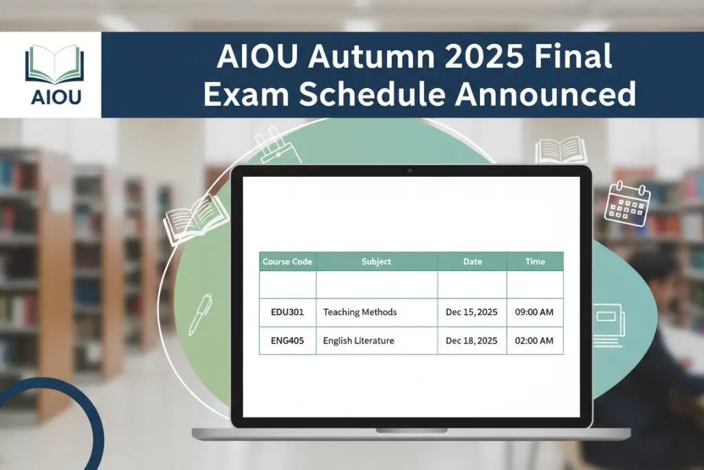 علامہ اقبال اوپن یونیورسٹی (AIOU) کے خزاں 2025 امتحانات کے شیڈول کا اعلان