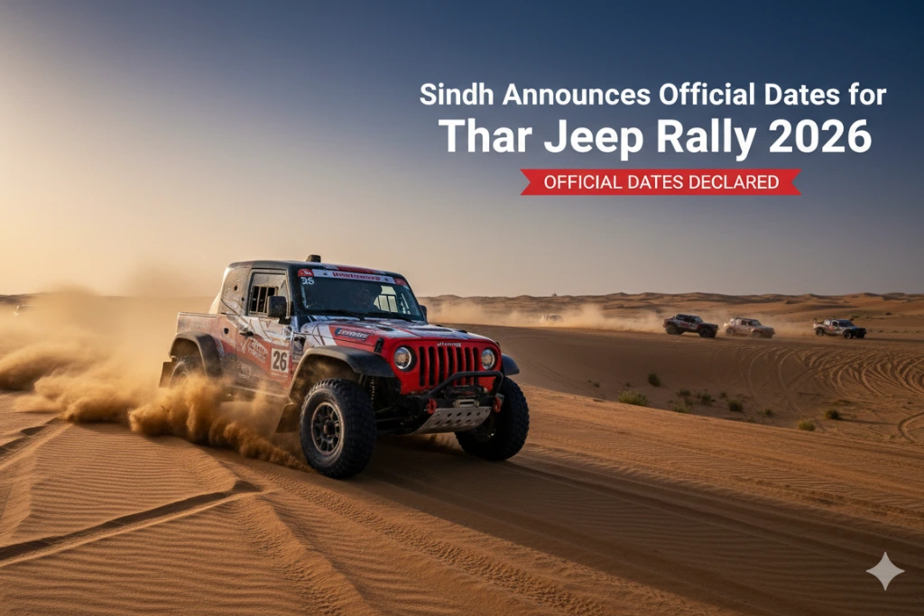 محکمہ کھیل سندھ نے تھر کے صحرا کے خوبصورت مناظر میں ہونے والی انتہائی شاندار تھر جیپ ریلی کی باقاعدہ تاریخوں کا اعلان کر دیا ہے۔ یہ چار روزہ ایونٹ 26 مارچ سے 29 مارچ 2026 تک منعقد ہوگا جس میں ملک بھر سے ٹاپ ڈرائیورز اور موٹر اسپورٹس کے شائقین شرکت کریں گے۔