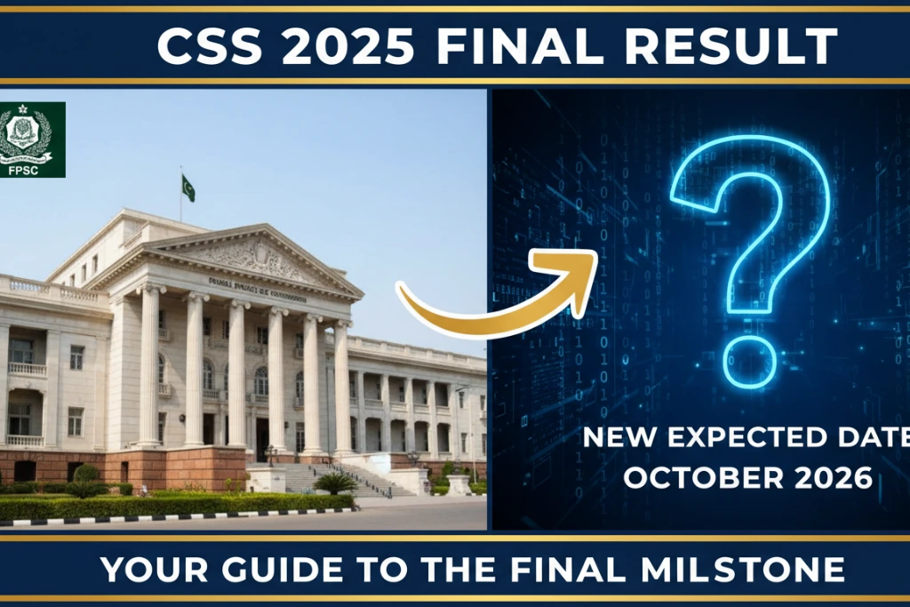 فیڈرل پبلک سروس کمیشن (FPSC) نے سی ایس ایس (CSS) مسابقتی امتحان 2025 کے فائنل رزلٹ میں تاخیر کا باضابطہ اعلان کر دیا ہے۔ حال ہی میں جاری کردہ ایک پبلک نوٹس کے مطابق امیدواروں کو مزید کچھ انتظار کرنا پڑے گا کیونکہ اب یہ بے چینی سے منتظر فائنل رزلٹ اپریل 2026 میں آنے کی توقع ہے۔