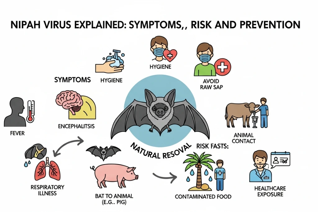 نپاہ ایک نایاب لیکن خطرناک وائرل بیماری ہے جو زیادہ تر جانوروں سے انسانوں میں منتقل ہوتی ہے۔ اس کے قدرتی میزبان پھل کھانے والے چمگادڑ (Fruit Bats) ہیں جو وائرس انسانوں تک پہنچا سکتے ہیں۔