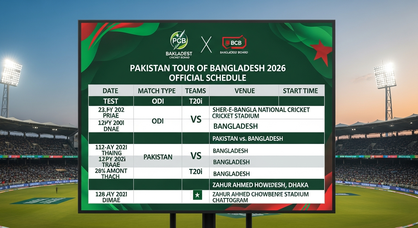 پاکستان کا دورۂ بنگلہ دیش 2026: میچ شیڈول