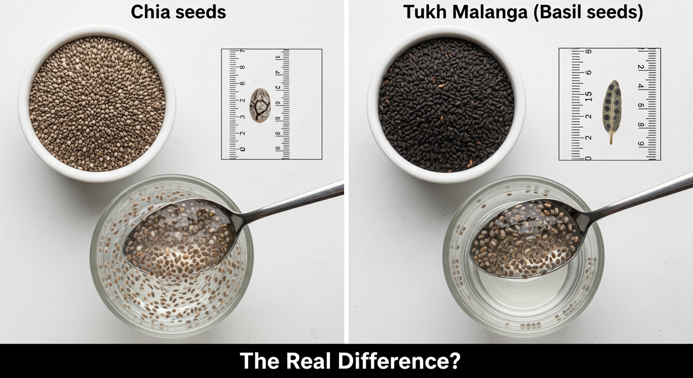 چیا سیڈز غذائیت سے بھرپور بیج ہیں جو جدید طرزِ زندگی کے لیے بہترین ہیں جبکہ تخمِ ملنگا ایک روایتی قدرتی چیز ہے جو ٹھنڈک اور ہاضمے کے لیے استعمال ہوتی ہے۔