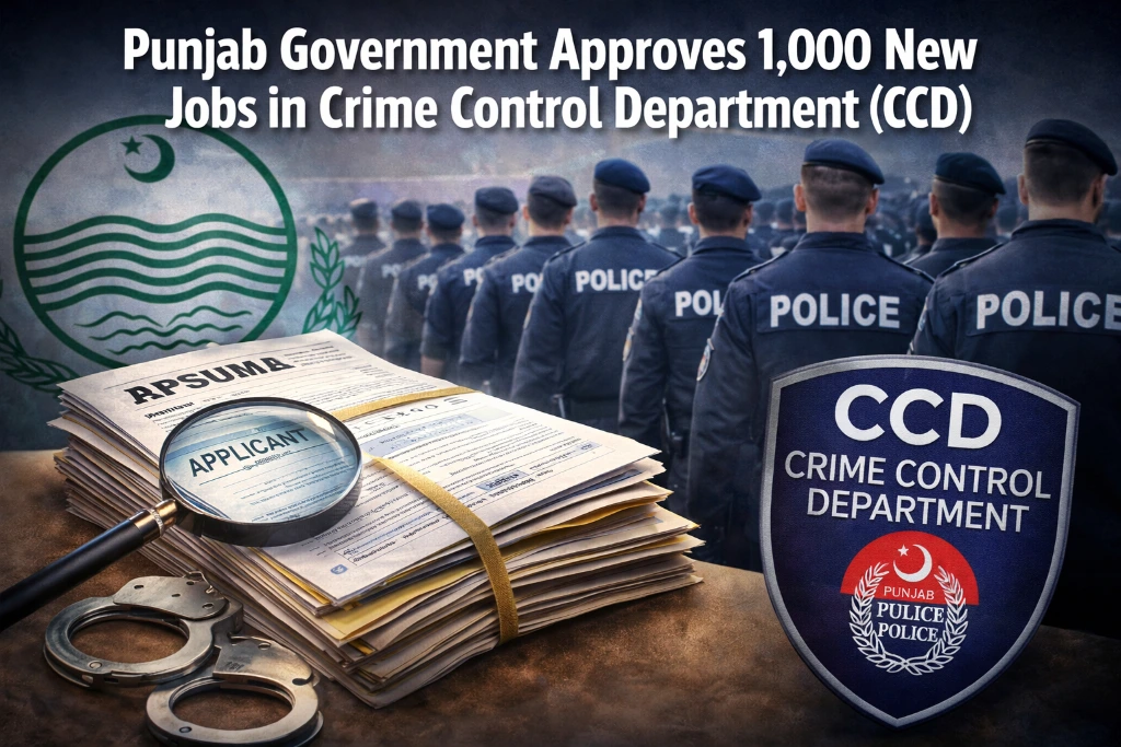 پنجاب حکومت نے باضابطہ طور پر کرائم کنٹرول ڈیپارٹمنٹ (CCD) کے لیے مختلف رینک پر 1,000 نئے اہلکاروں کی بھرتی کی منظوری دے دی ہے۔