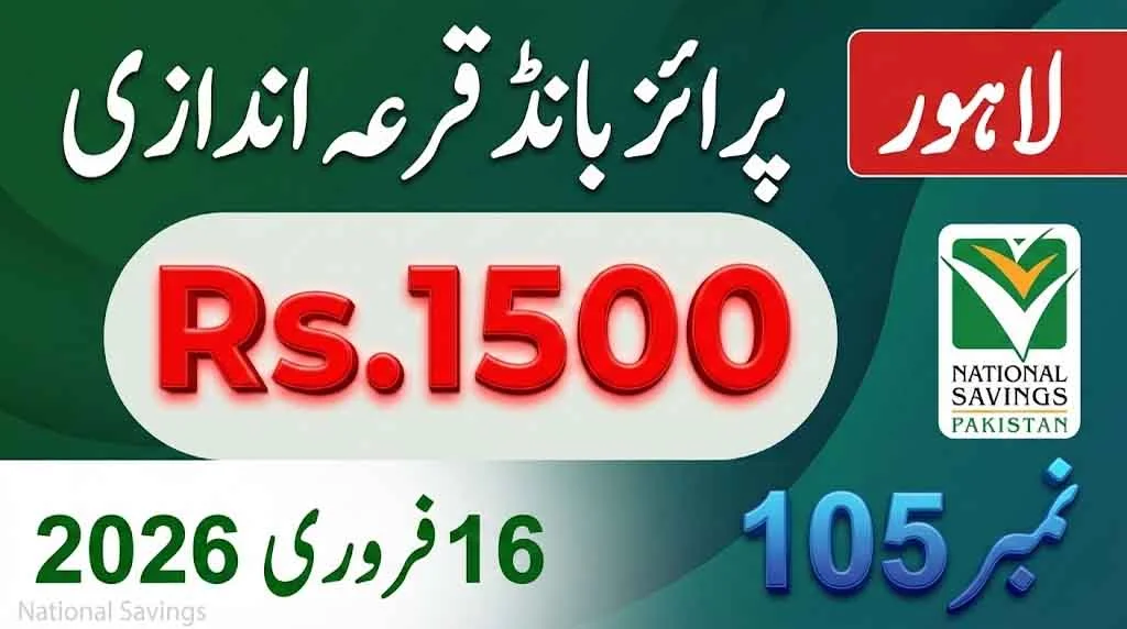 نیشنل سیونگز ڈویژن نے 1500 روپے کے پرائز بانڈ کی قرعہ اندازی نمبر 105 کے نتائج کا باضابطہ اعلان کر دیا ہے جو آج 16 فروری 2026 کو لاہور میں منعقد ہوئی۔ ہزاروں شرکاء اس انتہائی مقبول مالیت کے بانڈ کے نتائج کا بے صبری سے انتظار کر رہے تھے۔