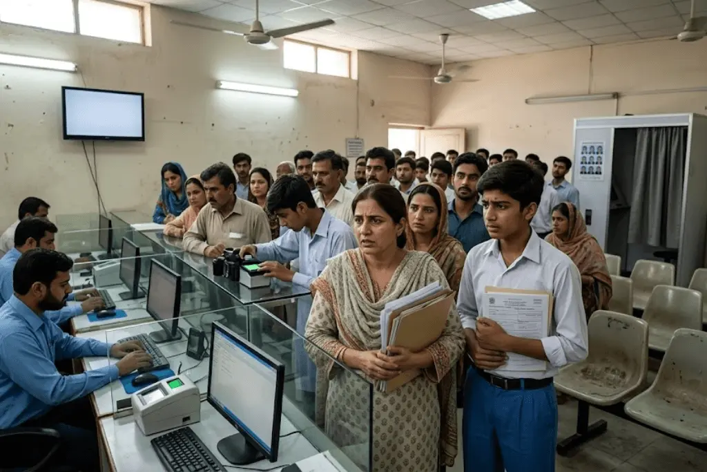 انتظامی افراتفری: نادرا سینٹرز پر پہلے ہی رش ہے اور آج صبح 6 بجے ہی لمبی قطاریں لگ گئیں۔ اچانک درخواست گزاروں کے اضافے سے کئی سینٹرز پر سسٹم کریش ہونے کی اطلاعات بھی موصول ہوئی ہیں۔